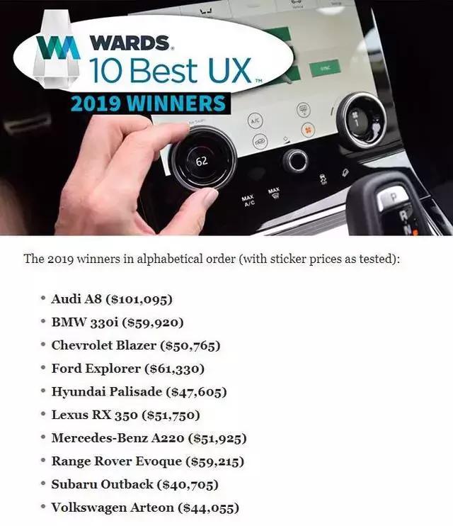 9月10日,美国汽车杂志WARDS AUTO评选出了“2019沃德十佳用户体验车型”,没错,我们常听到的“沃德十佳发动机”和“沃德十佳内饰”均出自WARDS AUTO之手。