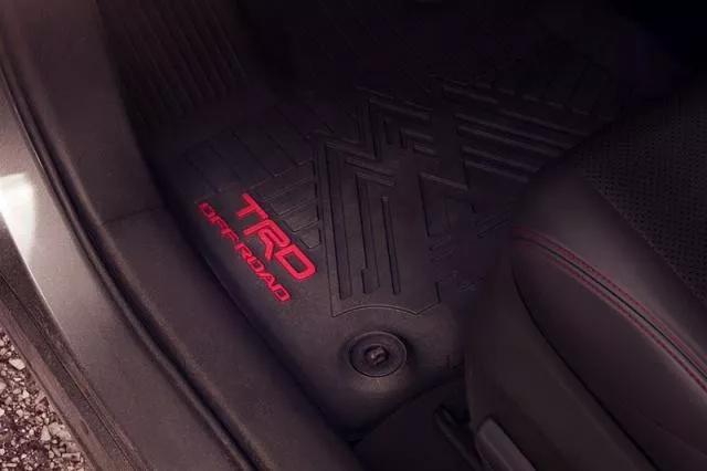 内饰方面,RAV4 TRDOff-Road以多处的红色饰板、及红色车缝线点缀,座椅则以舒适的SofTex人造材质包覆,其不仅较皮革更轻、也更耐用,双前座座椅头枕上更附有TRD标准字刺绣,另外全天候适用的车内脚踏垫、及车尾箱衬垫等,则易于使用者清理沾附的泥巴、沙子、或脏污等。