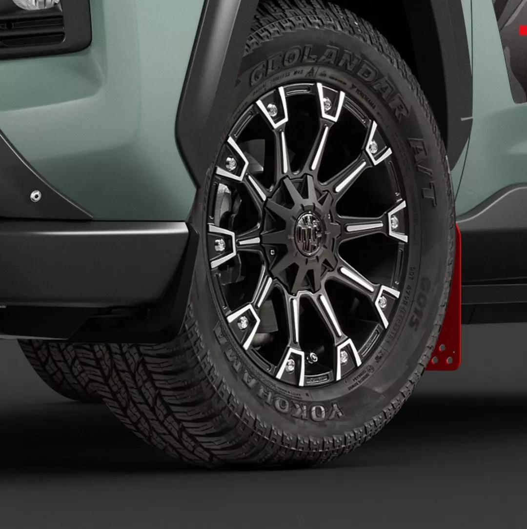 第一款名为 “Field Monster” 的 Bodykit 基于 Adventure 车型打造而成,走的是较为粗旷的越野风,也因此可以看到更宽的黑色塑料轮拱、车侧的 TRD 车身贴纸、造型粗旷的 TRD 前后外观套件、位于前保险杠的 LED 小型照射灯、车顶行李架、越野式样的挡泥板以及17寸的运动轮圈搭配越野轮胎的设计。