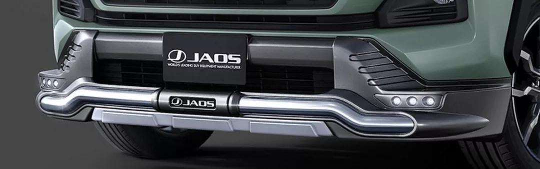其中第一款名为 JAOS 的外观套件采用的是偏向越野风格的休闲风,因此可以看到粗旷又厚实的空气力套件设计、额外的车侧护板设计、前方的LED照射灯、C柱风格饰板以及20寸的运动轮圈。