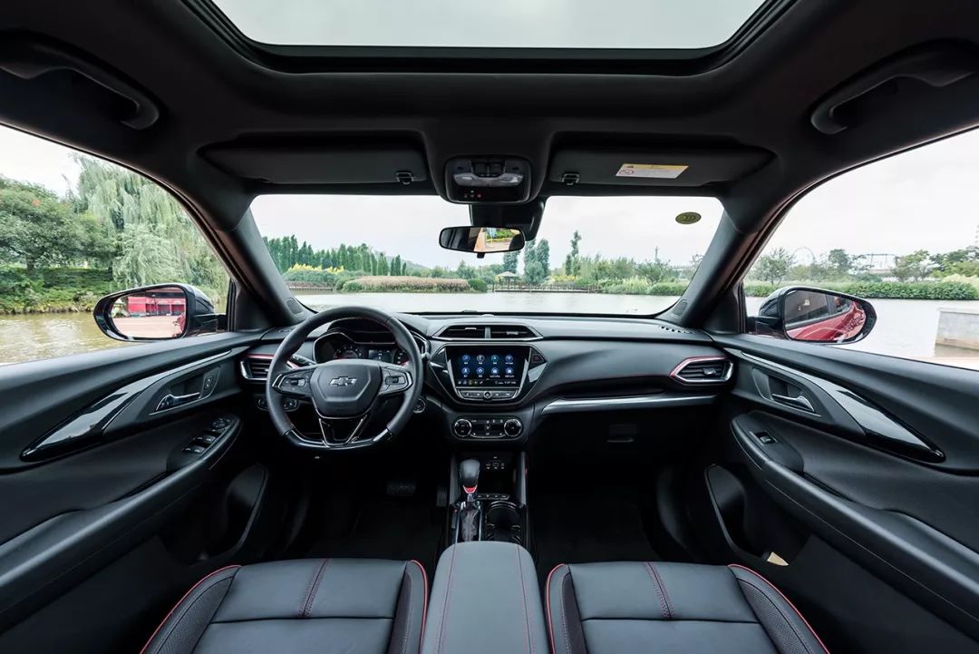 内饰部分,两个版本都采用了雪佛兰经典的飞翼式双座舱设计,均以黑色为主的内饰配色,除了方向盘造型不一样和贴上各自版本的专属标识外,创界RS分别在空调出风口、挡把、中控把手饰条、座椅缝线、仪表盘外圈等地方采用了大量红色元素。