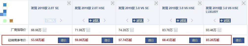 发现5在售的5款车型均满足国六的排放标准,厂商指导价格区间为66.98万-93.48万,入门版车型现在的优惠幅度在13万左右,从66.98万降至53.58万,其余车型也都有着比较可观的优惠。