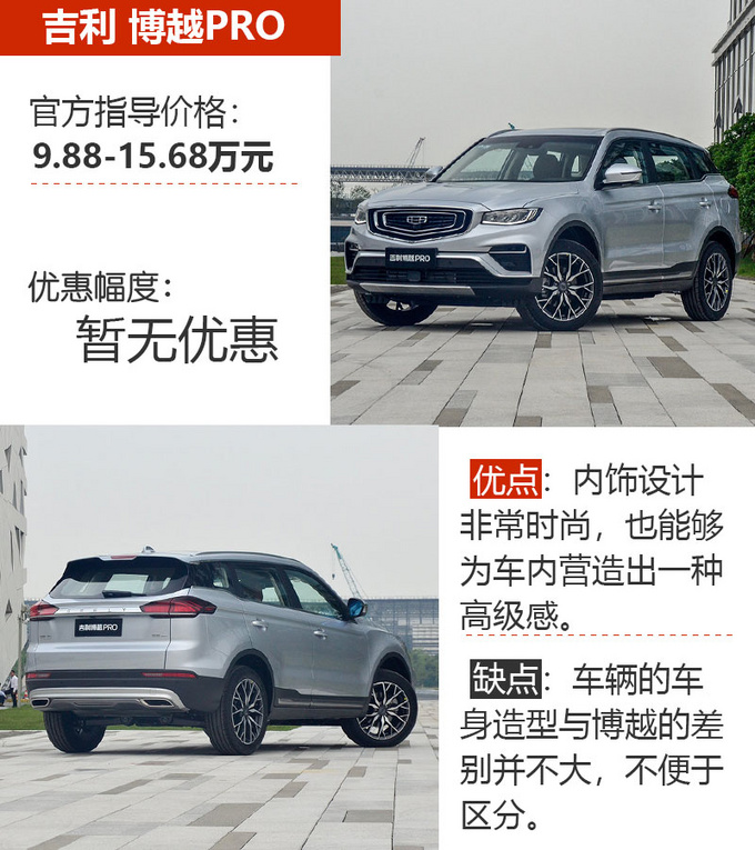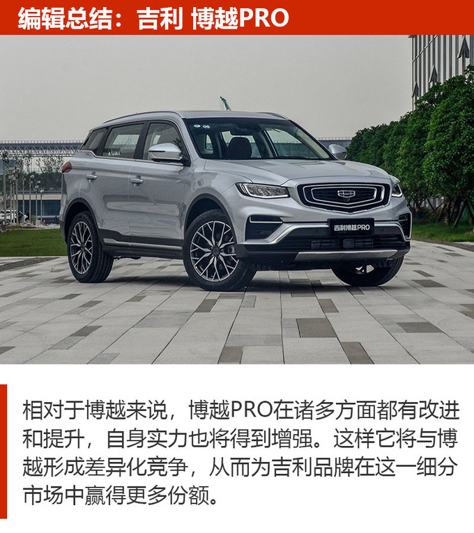 既然车名中出现了“PRO”的字样就表明了,博越 (配置|询价)PRO将与博越有着众多不同。而从博越PRO的身上,我们也看到了很多惊喜之处所在,而这些对于消费者来说,应该很符合他们的预期,或者说这就是他们想要的。所以,这样一款车型的出现如果觉得不错就应该多看看。