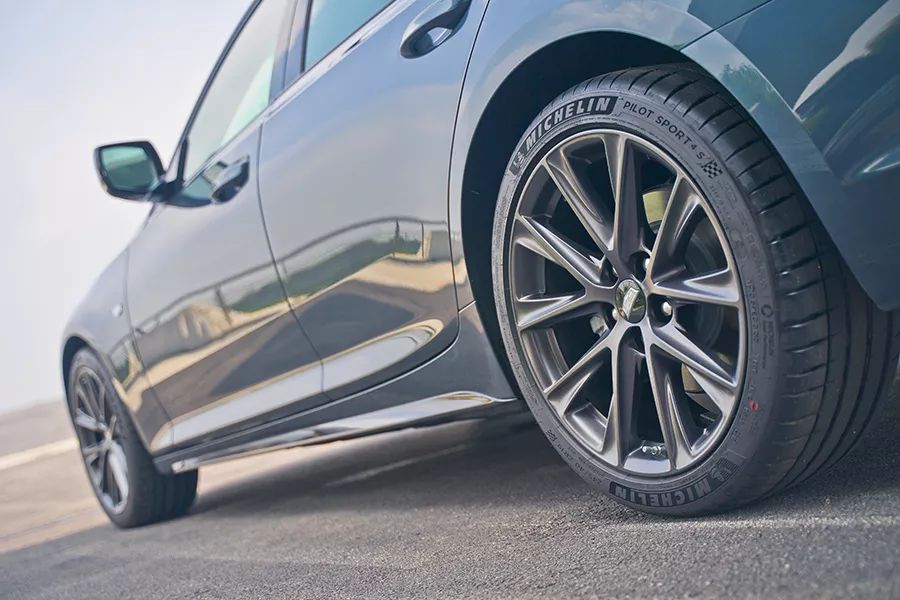 车身侧面打量,得益于后驱车型“短前悬”的设计,凯迪拉克CT5的侧面造型颇具运动感,延伸至C柱上独特的阿尔法钻石折角,勾勒出清晰的溜背式轮廓。值得一提的是,运动版还配备了专属19英寸曜石铝合金轮毂、高性能Brembo蓝色制动卡钳以及米其林PILOT SPORT 4的轮胎,其规格为245/40 R19,这进一步为其操控性能加分。