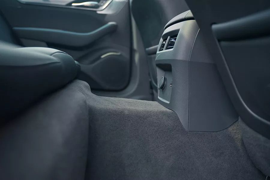 185cm的体验者实际乘坐体验,前排头部空间有1拳的余量,后排头部空间有1指的余量,腿部有1拳2指的余量。虽然是溜背的设计,但是其后排头部空间有凹空的设计,拓展了头部空间。因为后驱的设定,其后排中间的凸起较高不可避免。此外,其后排还配备了中央扶手、空调出风口以及USB接口等功能配置。