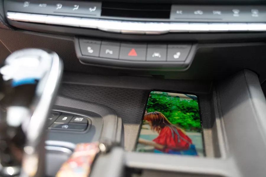 凯迪拉克CT5的中央扶手厢很宽大,其深度也很可观。值得一提的是,其高配版本车型还配有了前排手机无线充电槽。扶手箱前面的位置还配备了手机收纳格,拿取非常的便利。