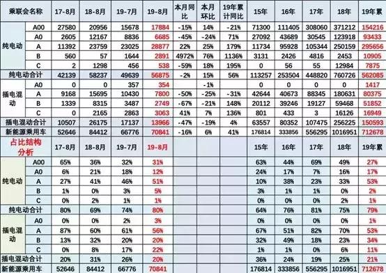 总体来说,纯电动乘用车市场作为新能源汽车的主体,在经历了7月“腰斩”之后,8月稳住了大势微微“回暖”,相信在此轮下跌之后将从9月开始逐步恢复增长。