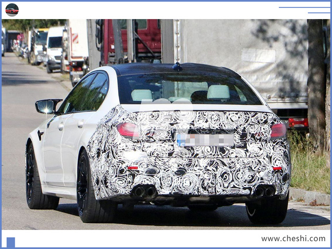 外观方面,宝马新款M5外观与在普通版车型基本上,车身融入大量运动套件,细节处进行黑化处理,前唇位置融入碳纤维材质,车侧配有M家族标志性牛角式后视镜,下方选用多辐式熏黑轮毂,车尾加入M尾标彰显其运动身份,排气为双边共四出式布局。动力方面,新车搭载4.4T V8双涡轮增压发动机,最大马力为600马力(约合441kW),并将适配48V轻混系统,传动系统匹配8速手自一体变速箱,并配备M xDrive驱动系统。