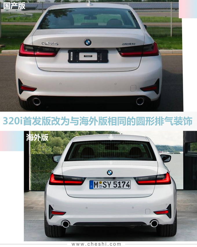 宝马320系列预计采用三种外观设计,分别为首发版、M运动套装以及M运动曜夜版。新车前脸为连体双肾形进气格栅,LED“天使眼”大灯沿用开眼角设计。侧面提供18英寸、19英寸共6种样式轮毂,尾部配备3D悬浮式灯组,排气为双边双出式布局,320i首发版车型改为圆形排气装饰与海外版车型保持一致。