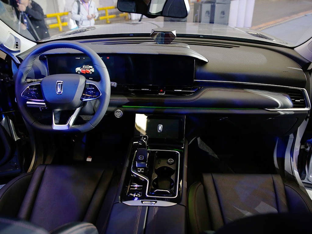 内饰整体以黑色为主,大面积真皮包裹+贯穿式空调出风口设计+镀铬装饰条的点缀提升了新车内饰的品质感。