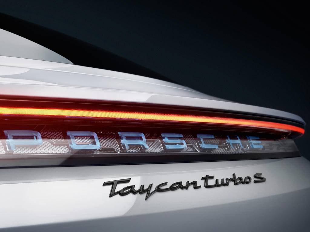 不过这款四门造型的轿跑车给人的感觉并不常规,毕竟保时捷被众人追捧不仅是它出色的性能,还有设计。来到车尾可以看到,流畅紧凑的线条让人第一眼绝对被惊艳到了,既能看出它的高性能,也能带来一定的精致豪华感,比如车顶扰流板的设计,不夸张但也相当到位,并且可以伸缩。车尾让人印象最深刻的应该是贯穿式的LED尾灯组,细长的造型配合玻璃质感的品牌英文logo,虽然不会发光可看上去绝对够有档次,唯一遗憾就是它没有排气布局,毕竟是纯电动。