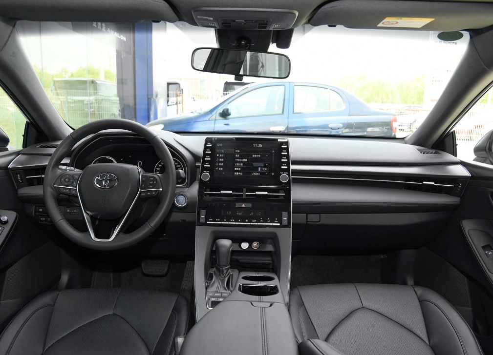 内饰用料采用了软性材质,门板还用了皮革包裹。方向盘造型中规中矩,手感十分不错,两侧的多功能按键布局合理,上手容易。9英寸的屏幕尺寸可以直接触控,还能通过左右两侧的按键进行操作。亚洲龙采用了双区自动空调。