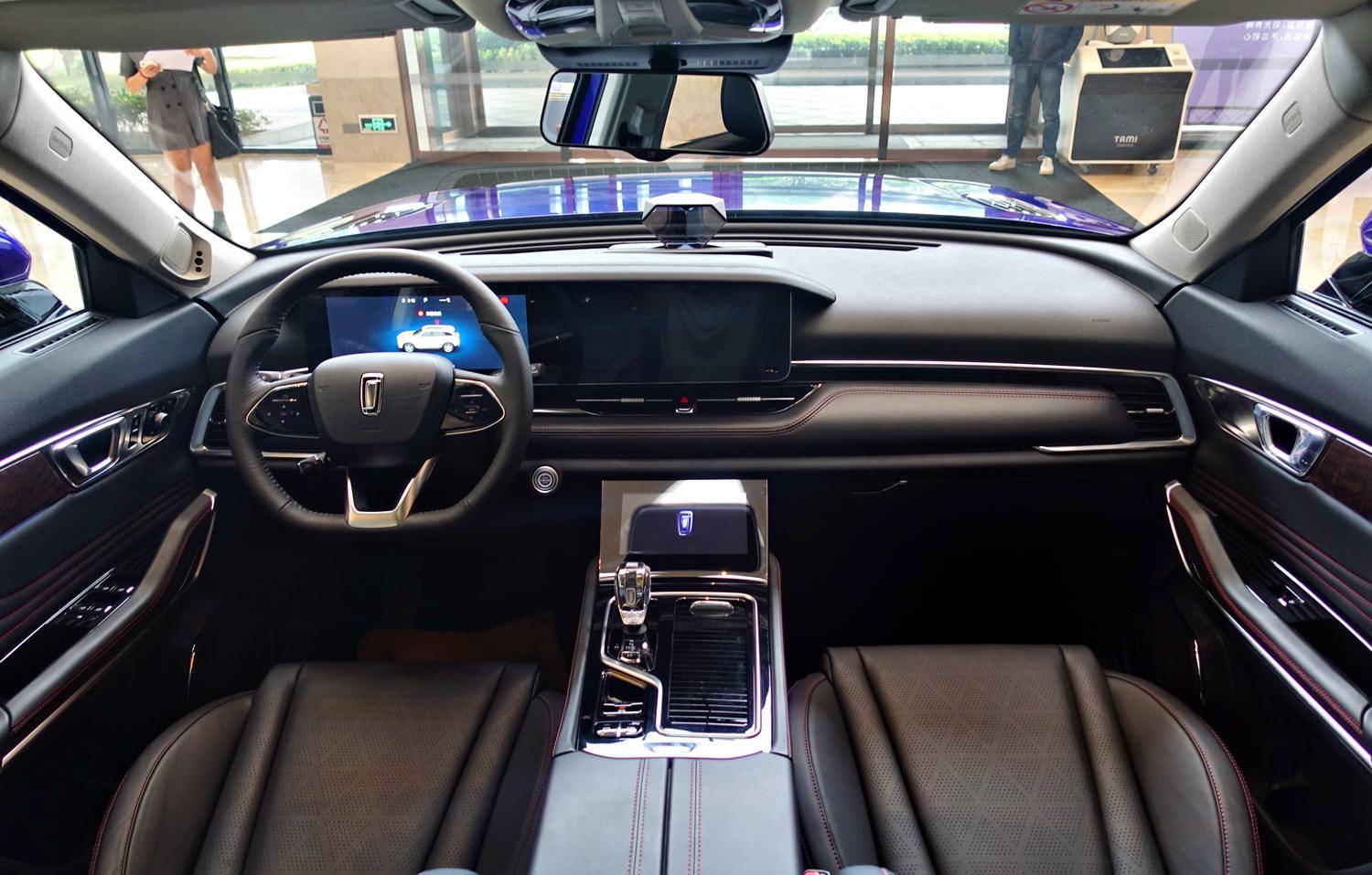 在中控台上依旧有保留全息投影装置,这充满“二次元”YOMI形象的设计带来全新的交互体验。另外,三块大尺寸屏幕则取代了大量的实体操作按键,看上去要更加的简洁。