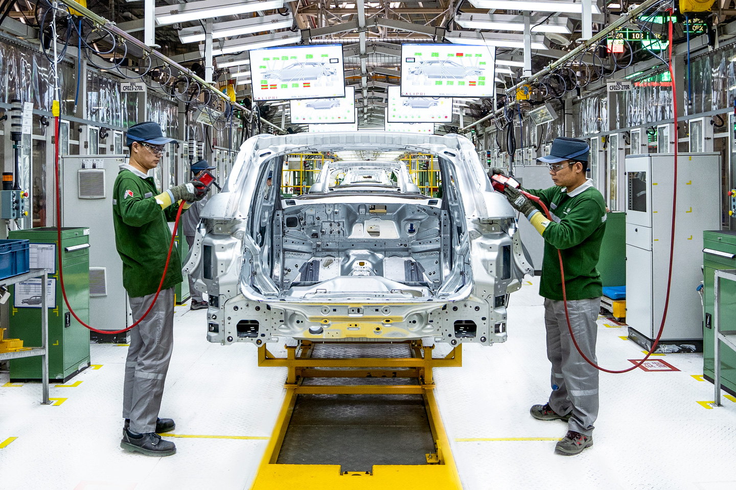 得益于奇瑞捷豹路虎常熟工厂技术领先的冲压车间与焊装车间,为奇瑞捷豹路虎旗下全车型打下了良好的“基础”。全新捷豹XEL为追求更高强度、更出色的耐腐蚀性与抗氧化能力,其车身采用比例高达71%的航空级6000系铝合金。独特的一体式冲压侧板,需要将一整块强度极大的6000系铝合金冲压成重量不到6公斤的车身侧板。为此,奇瑞捷豹路虎常熟工厂建立了全球领先水平的冲压车间,自动化率高达 90%。