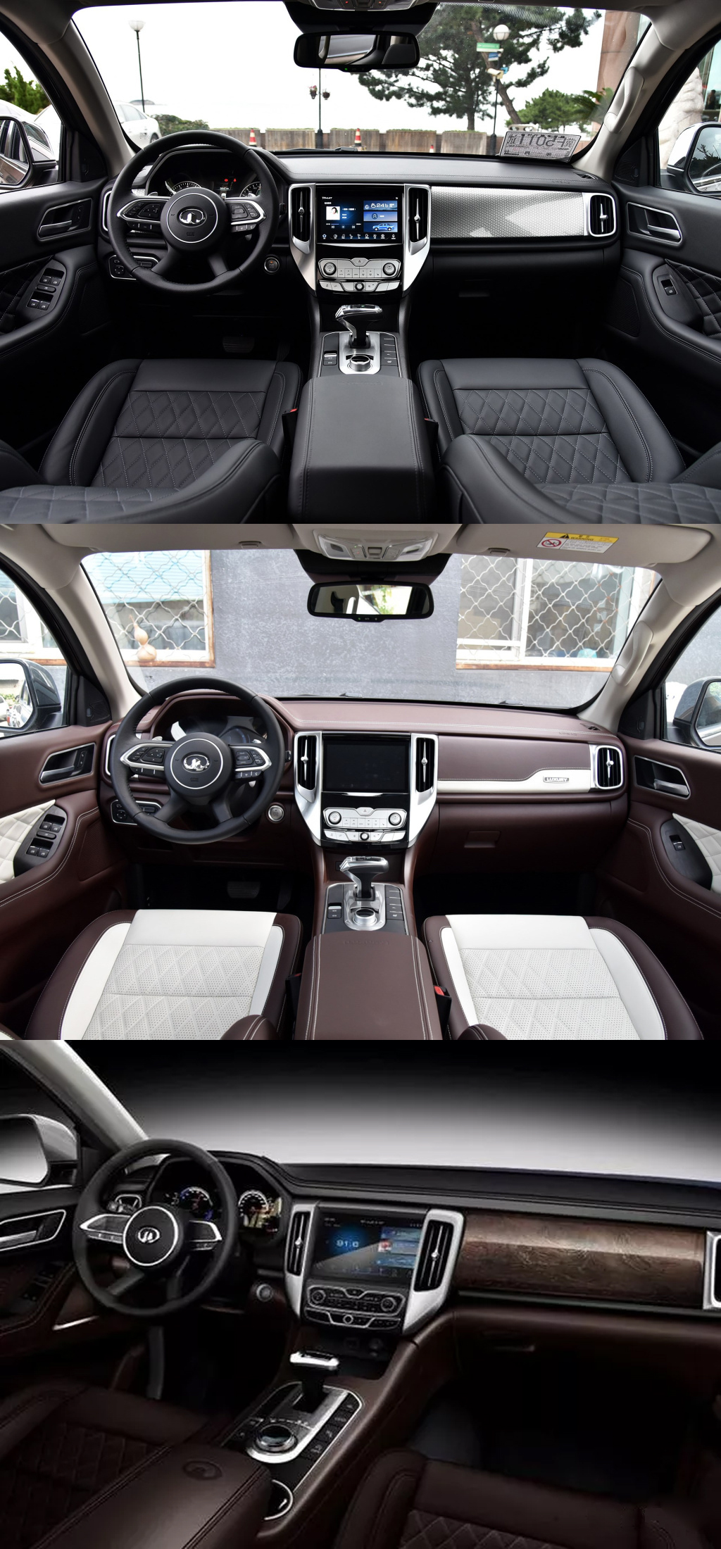 内饰方面,仪表盘采用了机械路码表加液晶显示器的设计,中控则是两个竖排的空调出风口夹着一个大屏幕,空调控制面板采用了物理按键。副驾驶会根据车型不同而听欧诺个科技感纹理、棕色仿木纹饰板以及棕白色皮革材质三种类型。