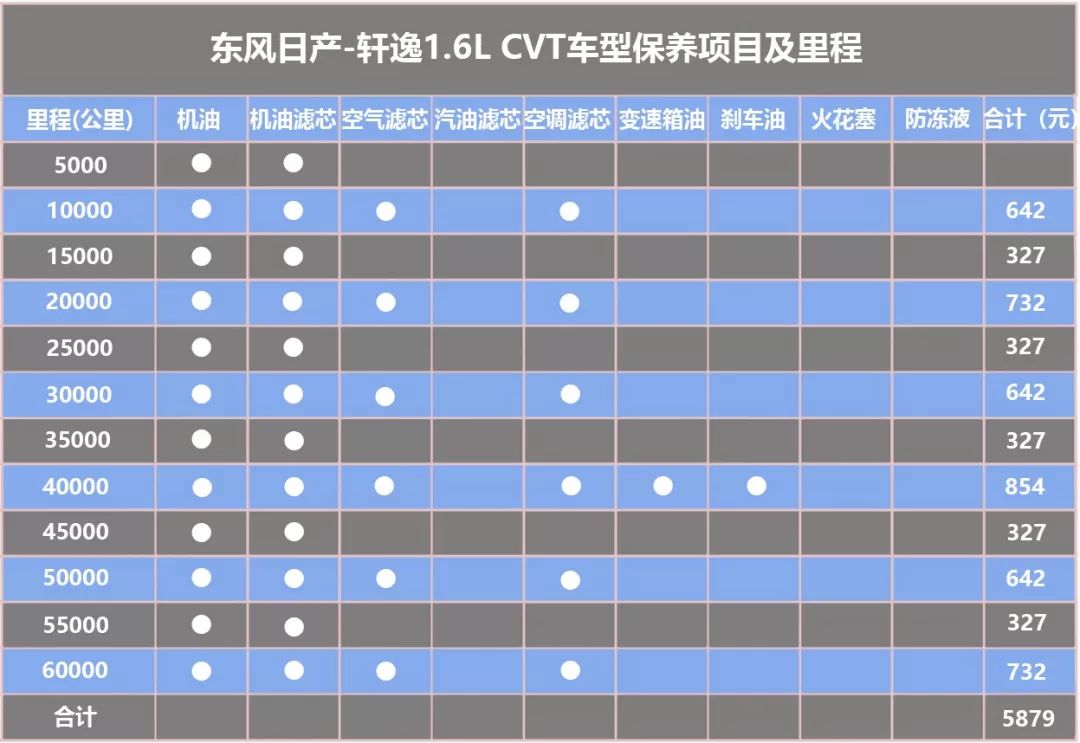 全新一代轩逸的建议保养周期为5000公里,小保养327元,也不算贵,但是情况与思域有些类似,就是60000公里周期内自费保养次数较多,整个周期保养费用为5879元,比卡罗拉多出不少。综合油费、保险费用,轩逸2020款1.6XL CVT悦享型一年用车成本为18750元,每月平均1547元。