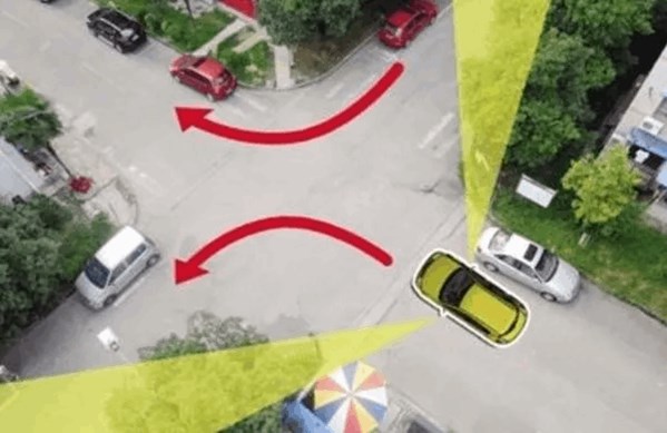 超车时:我们会遇到被右侧车辆遮挡住右前方的视线;