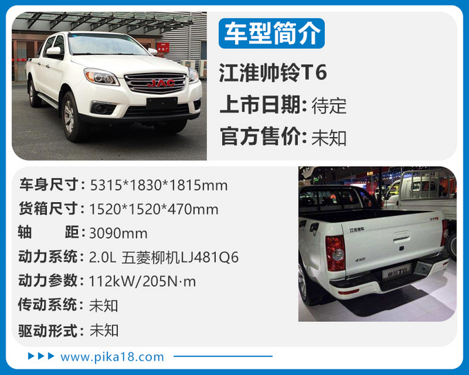 江淮作为国内知名的商用车企业,旗下皮卡车型同样备受用户关注,江淮帅铃T6作为一款追求经济价值和实用性的皮卡,兼顾通过性和载重能力,实用性非常强,在消费级皮卡车型里深得广大皮卡用户的欢迎。在国六排放标准逐渐推广之际,消费者也希望这款车能升级到国六排放标准。8月中旬,江淮帅铃T6汽油国六版正式报批工信部,满足国六b排放标准,升级国六的帅铃T6有的看点就是更换了此前从未再皮卡上使用过的五菱柳机LJ481Q6发动机,这款发动机具有结构紧凑、低油耗、排放低、噪音小等特点,期待这款发动机在市场上的实际表现能名副其实。