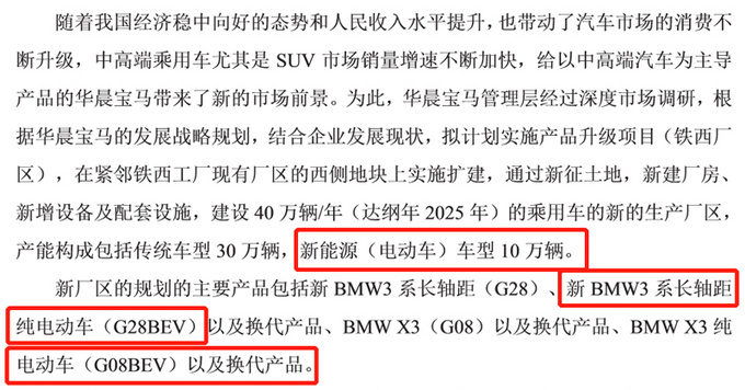 2020年宝马首款纯电动SUV iX3 (配置|询价),将在华晨宝马投产并出口至全球主要市场,而这仅仅是宝马国产电动车的开端。网上车市从华晨宝马官方获悉,iX3之后华晨宝马还将投产3系 (配置|询价)长轴距纯电动、5系长轴距纯电动、中高档电动SUV(预计X5级别)3款纯电动车。产能方面,根据华晨宝马的环评资料,其电动车年规划产能将超过15万辆(5系长轴距纯电动/中高档电动SUV合计54,170辆/年,3系纯电动+iX3合计10万辆/年)。