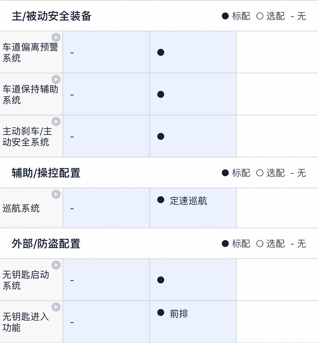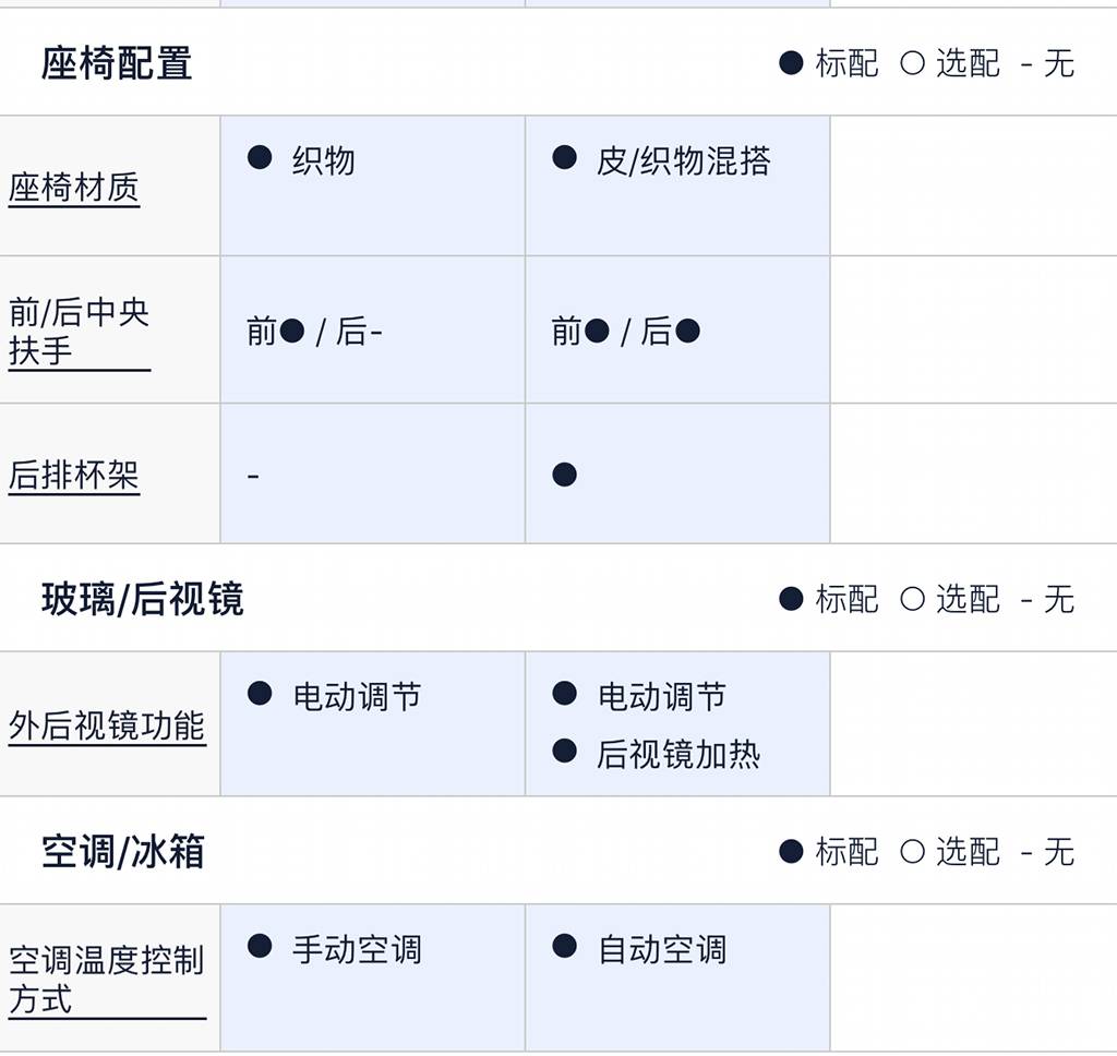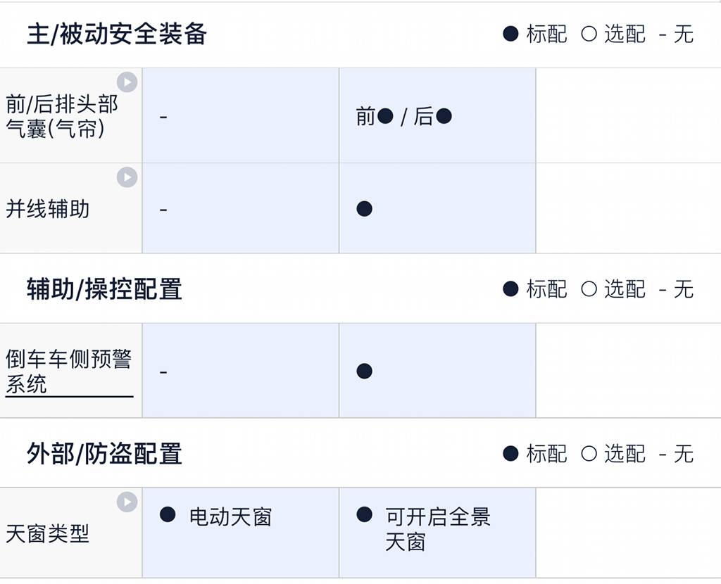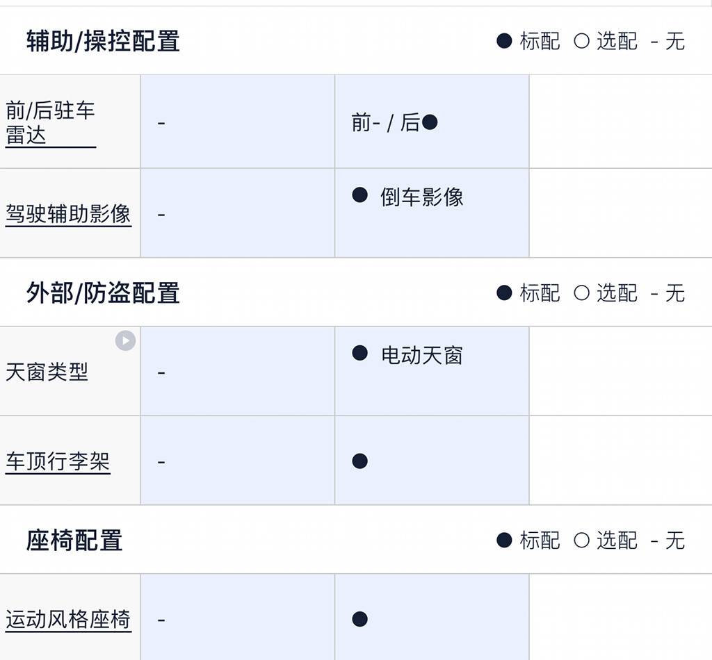 那么再多加1万元可获得的配置又有哪些呢?外部配置方面电动天窗升级为可开启全景天窗,外后视镜增加了加热功能。空调由手动改为自动,座椅方面由织物座椅升级为皮和织物混合材质,同样配备运动风格座椅,后排增加了后排杯架。辅助操控方面增加了倒车车侧预警系统,安全配置方面增加了前后排头部气囊。本车型相对于上款车型的提升主要体现在舒适性方面,上款车型已经足够满足日常驾驶需求,所以这1万所带来的提升并没有太大,只能说起到了一定锦上添花的作用。
