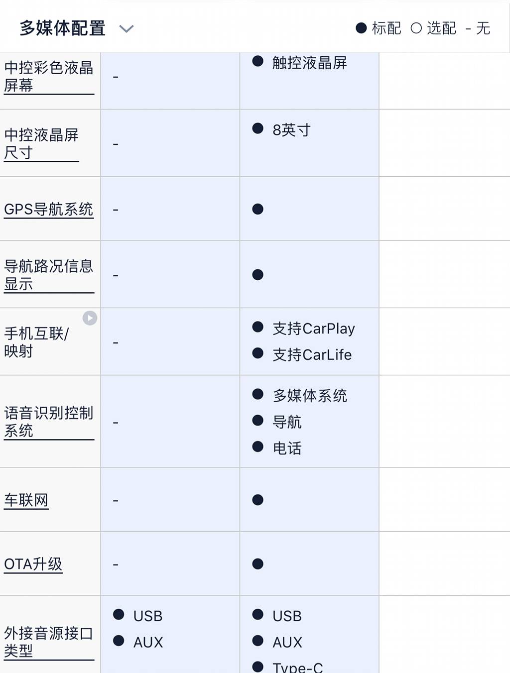 Redline CVT两驱驰锐版 对比RS CVT两驱劲锐版 配置明细