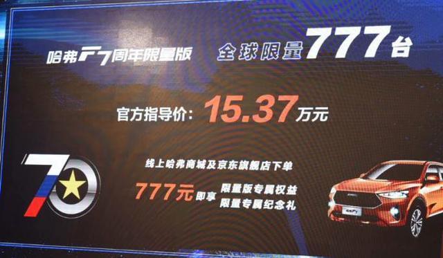 近日,哈弗为庆祝中俄建交70周年,发布F7 70周年限量版车型,新车不仅采用了专属的金色车身和标识,而且还可以获得专属的智能套装、纪念名牌等物品,这对于那些追求个性的年轻消费者无疑是拥有巨大诱惑力的,它也因此被网友称之为最帅“哈弗F7”。值得一提的是,目前新车已经正式上市,其售价为15.37万元,并限量发售777辆。那么究竟新车的具体表现如何,我们从以下几个方面来详细了解一下吧。