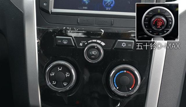 内饰方面铃拓和D-MAX基本一致,采用了和乘用车一样设计风格,并没有因为是皮卡车就显得过于廉价。看上去和一般的城市SUV没有任何区别。不过铃拓和D-MAX还是有部分的区别,空调控制区域两车差别较大,D-MAX是自动空调而铃拓是手动空调,并且旋钮样式也不一样,此外铃拓的车机屏幕比较小,不如D-MAX大。
