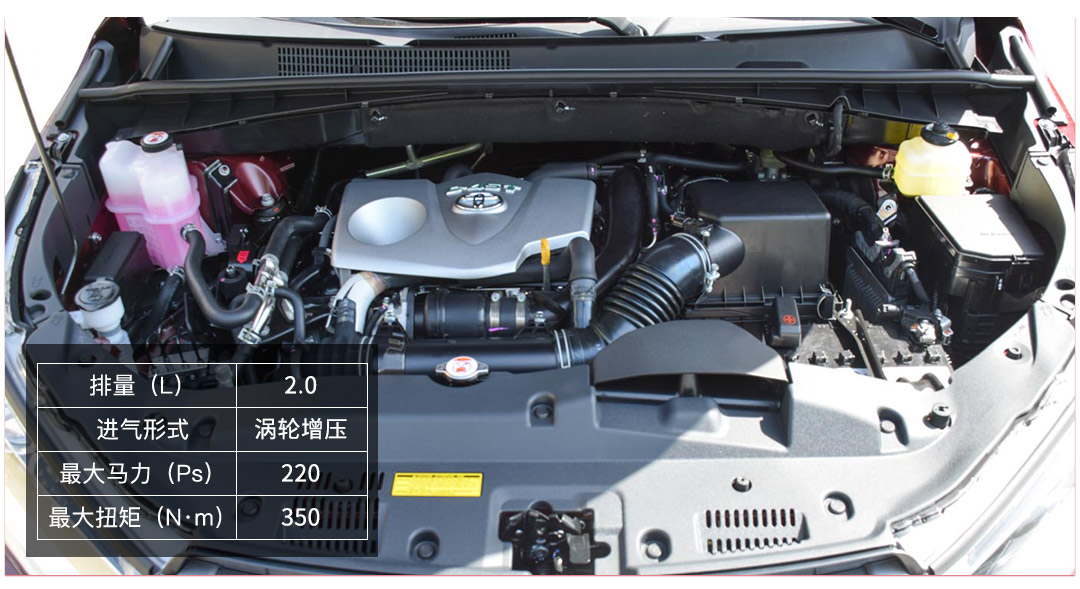 动力方面,汉兰达全系搭载2.0T发动机,最大功率220马力,峰值扭矩350牛•米。