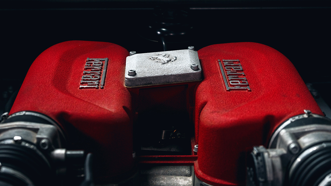 玻璃引擎盖下高调展示的Tipo F131 3.6公升V8引擎,搭配6前速半自动变速箱,亦代表着源自一级方程式的先进技术在21世纪给法拉利超级跑车带来的性能升级。