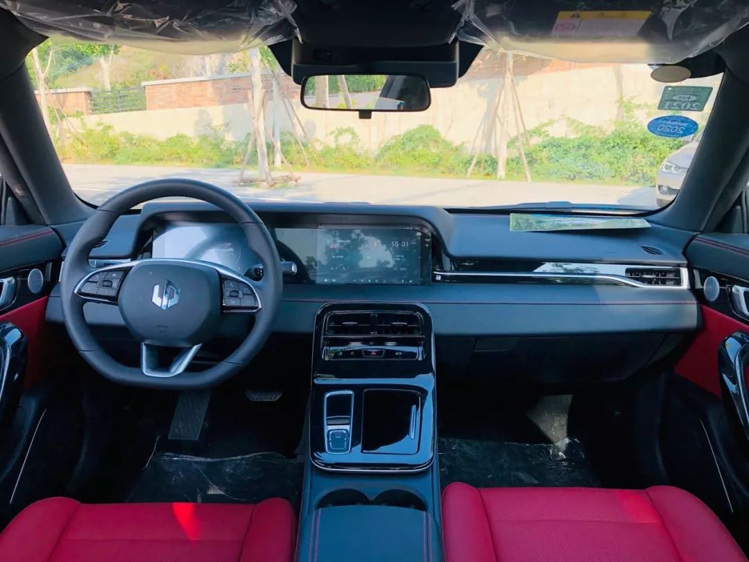 车内饰质感较好,仪表台、方向盘及扶手处都是软皮质包裹,由二块10.1英才的屏幕组成液晶仪表盘及中控大屏,如果二块屏能贯通就会显的更有档次。