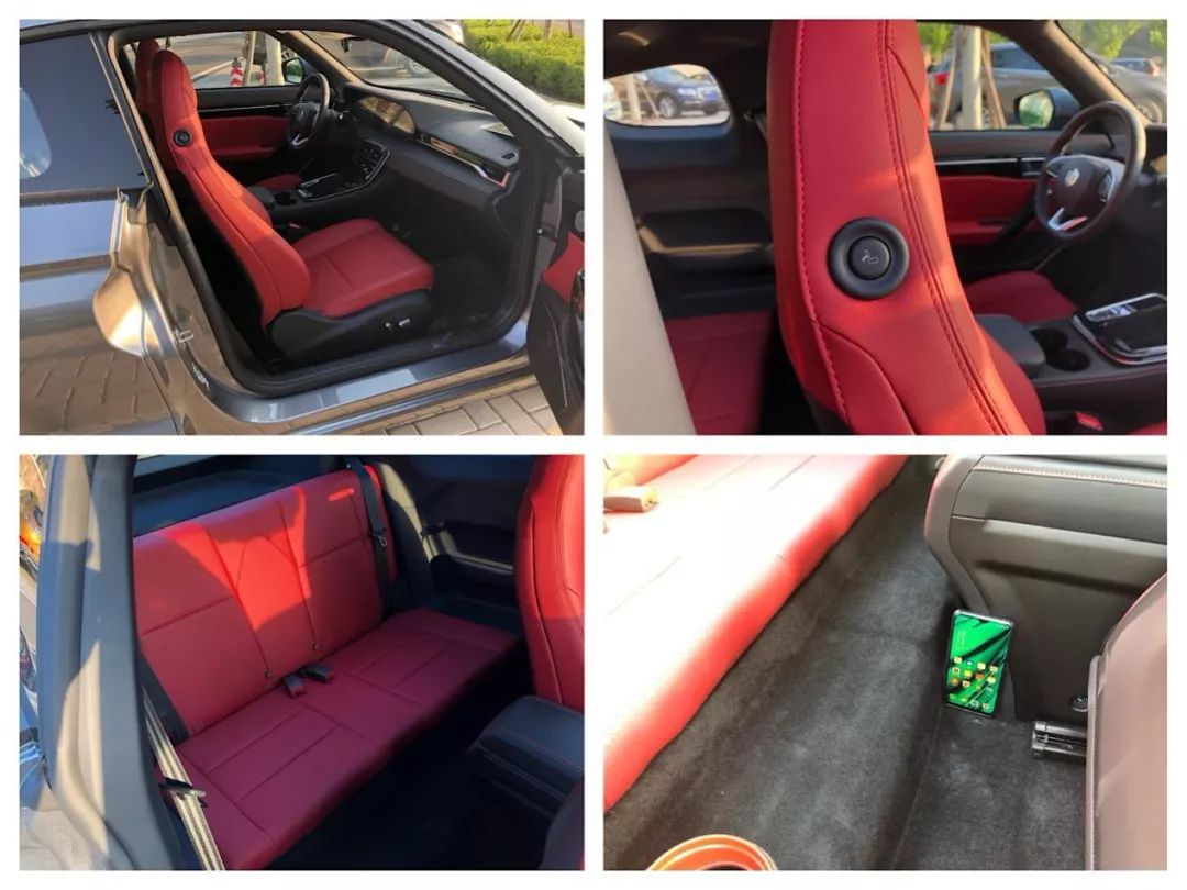 主副驾座椅支持电动调节,副驾头枕处还配有老板键,能使座椅电动向前收叠,方便进出后排。但后排座椅是不推荐坐人的,电池的原因使得地板较高,且头部空间有限,抱膝而坐会比较难受,后排座椅支持一定角度的放倒,可以为后备箱释放更多空间。