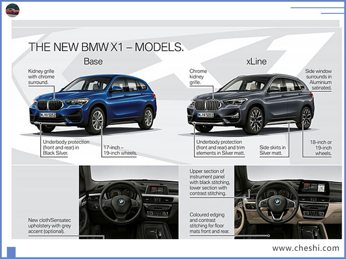外观方面,宝马新款X1将提供标准版、xLine、Sport Line、M Sport等套件可选,并新增Jucaro Beige米色、Misano Blue蓝色(M Sport专属)、以及Storm Bay共3种新配色。值得一提的是,新车还可选配LED投影灯,可将“X1”字样投射至地面(7系 (配置|询价)并未配备),豪华氛围营造的十分到位。内饰部分,新车将尺寸为6.5英寸的中控屏升级至10.25英寸,但继续搭载iDrive 6.0系统,高配车型将配备8.8英寸液晶仪表盘,另外还新增6中LED氛围灯,后排行李厢空间最大可拓展至1,550升。动力方面,新车继续搭载1.5T、2.0T发动机,最大功率分别为103kW、170kW,后续还将提供1.5T插混版本车型。