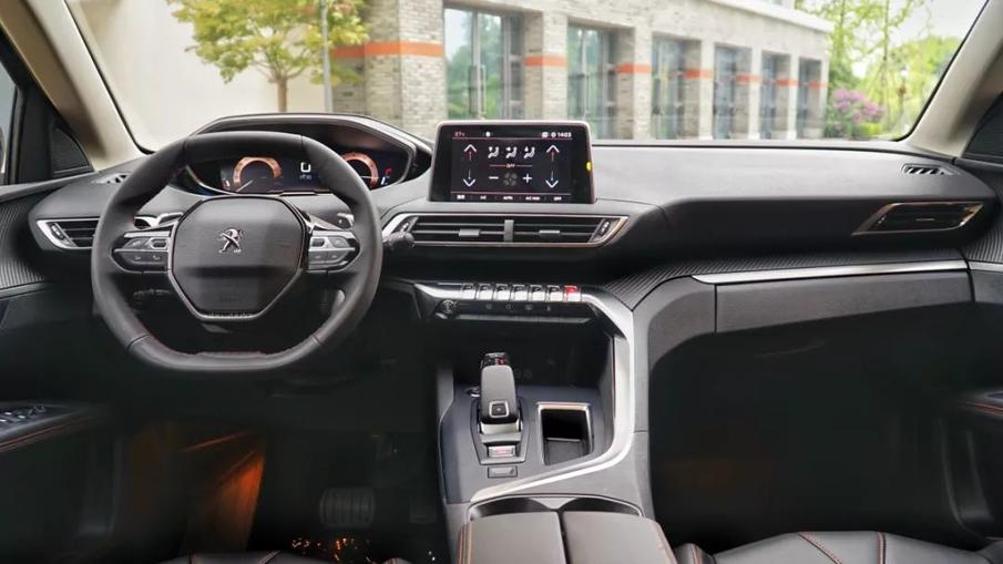 在外观上设计有新意的SUV层出不穷,但在内饰设计上能与外观一以贯之的却不多见,4008能算其中之一。尽管黑曜版车型在内饰上并无革新,但放在同级中依旧“扎眼”。从主驾视角出发,目力所及的范围内处处充满“战斗”气息。其中最抢眼的非尺寸小巧且握感上佳的方向盘莫属,同时上下采用平直的设计能在转动方向盘时最大限度减小对液晶仪表的遮挡。