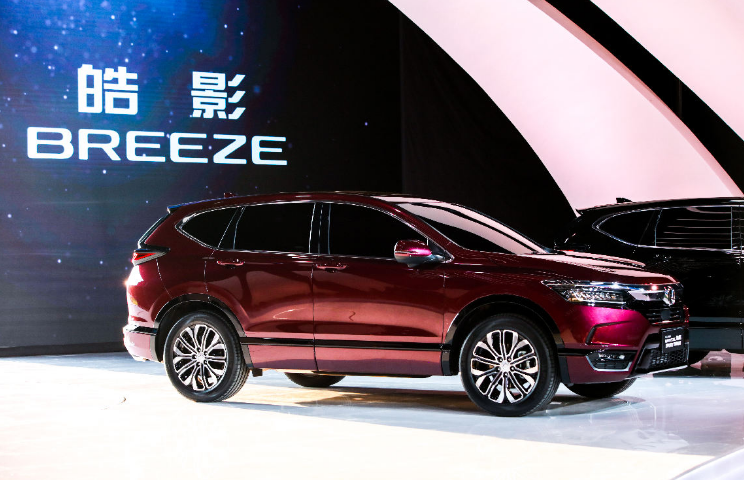 在发布活动现场,率先亮相的车型采用19寸铝轮辋,车身颜色分别为奥夫特黑和罗曼紫。皓影BREEZE格栅上方的贯穿式镀铬条将前大灯、车标整合在一起,与前格栅形成很强的一致感。同时,前脸的上半部分与下方保险杠形成“X”型的视觉效果,这些设计特征都属于典型的广汽本田设计风格,在雅阁、冠道中都能看到。