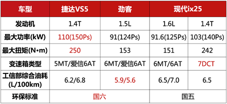 捷达VS5自带德系高品质光环而来:大众同款1.4T高功率发动机、德系高端的生产工艺、完善严谨的品质保障。再看与其同价位的合资车型劲客和ix25,他们凭借着多年在市场上摸爬滚打的经验,也在市场上占有一席之地。那么在这场“年轻人的第一台10万元SUV”之战中,捷达VS5究竟能否后来居上?
