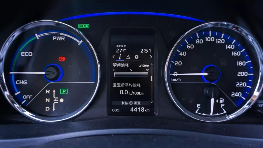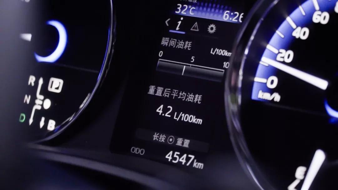在节油赛开跑前,我驾驶的这台卡罗拉双擎E+因为电池电量没有达到30%以上,所以开启不了EV纯电模式,只好使用HV模式驾驶。其实HV模式也是我最想体验的,因为我想尝试着按自己日常开车的风格来驾驶这台卡罗拉双擎E+,而不是为了比赛节油把车开得慢悠悠不敢踩油门。但是,在这100多公里的路途中,即便我按照放飞自我的风格来跑,跑出来的油耗依然只有4.2L/100km,这个油耗已经比官方给出的4.3L/100km的油耗还要低了。