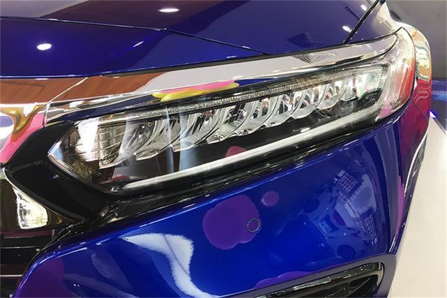 首先看看外观配置,雅阁采用最新设计语言,与老款车型相比,新车看起来不再那么商务,年轻运动是看到新一代雅阁外观的第一感受。大尺寸镀铬装饰贯穿整个车头,进一步拉伸了前脸部分的视觉宽度。新车大灯和雾灯采用了LED光源,高配车型还配置了远近LED大灯。下层大型熏黑进气格栅则是本田的家族式设计,在高配车型上还具备主动式进气格栅功能,高速时能减低风阻。其余配置方面新车也符合这个级别的中型轿车的定位,电子手刹、一键启动、全景影像、座椅通风和加热等功能应有尽有。安全配置方面新车也非常丰富,自动泊车、LKAS车道保持辅助系统、RDM车道偏离抑制系统、交通标志识别、LANE WATCH系统等你都能找到。