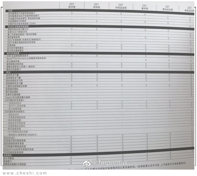 安全配置方面全系标配有前排安全气囊、前排侧安全气囊、前后排侧安全气帘、儿童安全座椅固定装置、低速自动刹车、前方行人探测预警、前方碰撞预警等配置。车道保持、全速防撞自动刹车、倒车碰撞预警、ACC智能巡航等配置仅顶配车型配备。