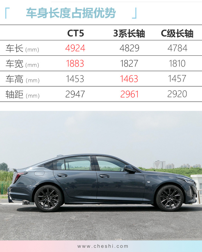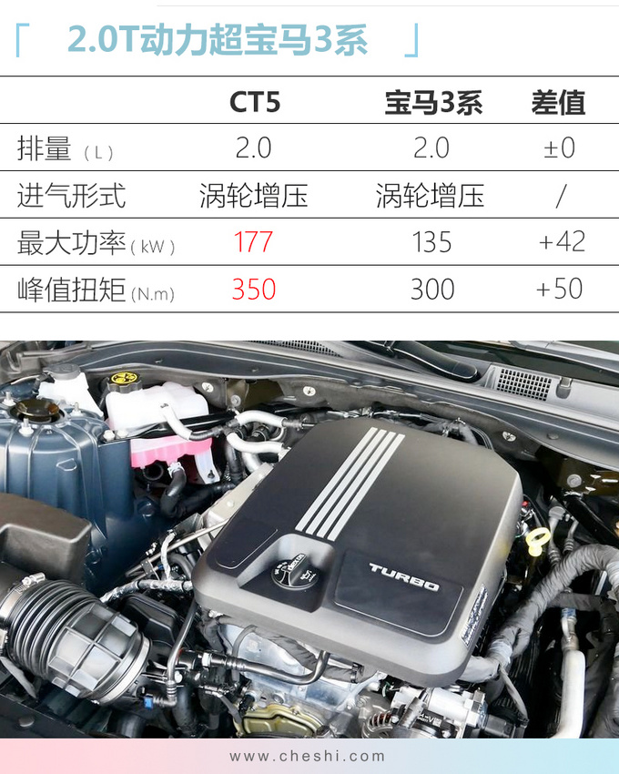内饰方面CT5设计较为简洁,全系标配10英寸悬浮式中控屏并带有安吉星系统,支持苹果Carplay与百度Carlife以及OTA在线更新等功能。新车仪表盘依然采用机械式的设计,顶配车型带有8英寸液晶显示屏。座椅方面入门版为织物座椅,中配车型采用皮革材质,中高配为Moli真皮。驾驶席8向电动调节为全系标配,但前排4向腰托、座椅记忆、加热、通风等舒适配置均出现在中高配车型上。ANC主动降噪静音技术依然是全系标配,15颗扬声器的Bose音响则出现在中高配车型。