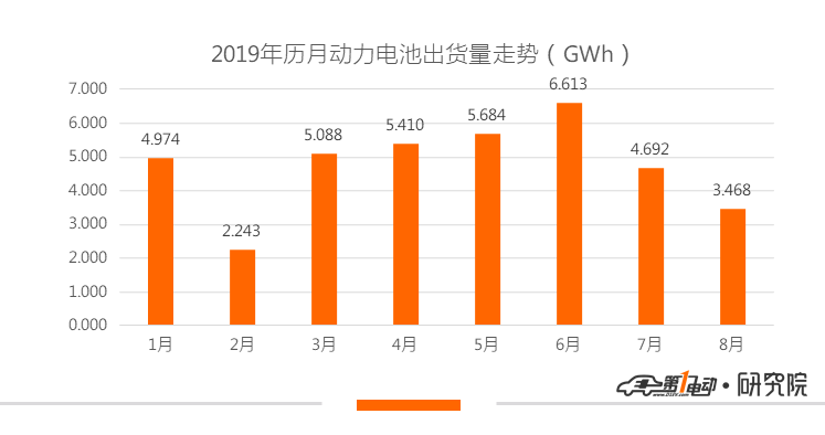 根据工信部合格证产量数据,2019年8月共产出新能源汽车7.1万辆。根据第一电动研究院的统计测算,动力电池2019年8月装机量约为3.468GWh(因8月31日数据缺失,测算装机量较实际会偏小),同比下降17.1%,环比下跌26.1%。这是今年动力电池装机量首次出现同比负增长。