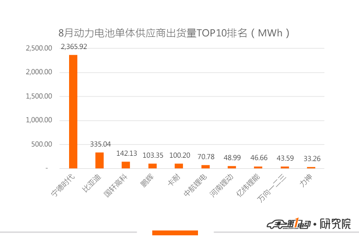 2019年1-8月总装机量为38.2GWh。其中,TOP10车企共装机34GWh,占比89%。