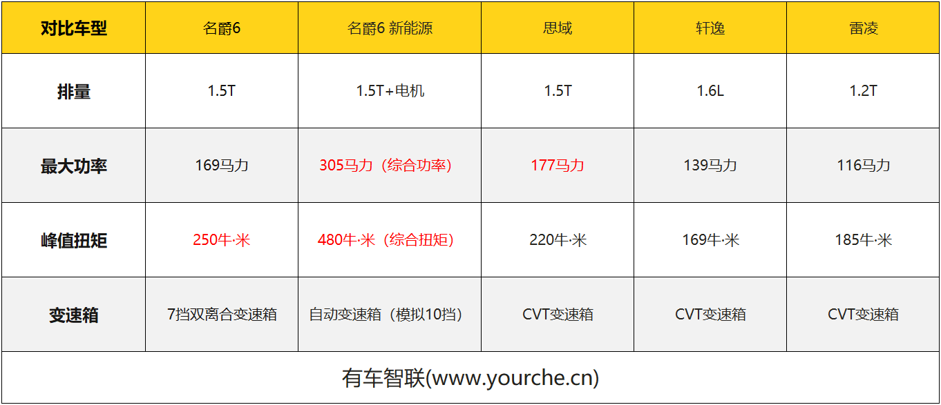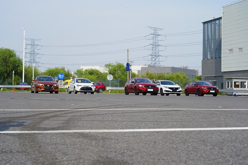 首先我们看看此次参赛车辆的各项参数,除了轩逸搭载自然吸气发动机外,其他车辆均搭载涡轮增压发动机,同时名爵6新能源则是搭载1.5T+电机组合的混动系统,账面数据上动力更加强劲。名爵6与思域的数值对比可以看出,名爵6的扭矩要比思域多30牛·米,最大功率则少了22马力,而轩逸与雷凌在动力方面的数值稍逊与其他车辆,在此次比赛测试中略显尴尬。