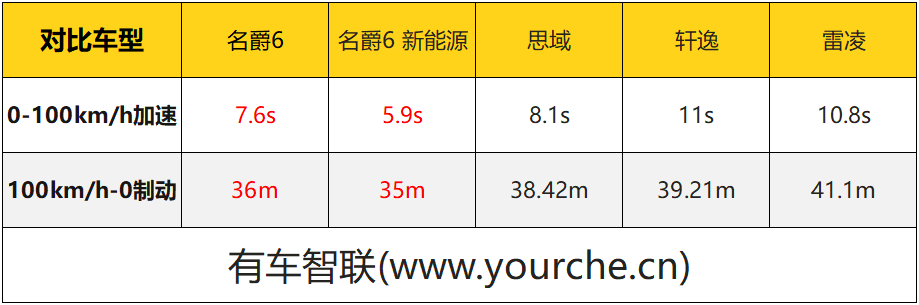 作为燃油车型第一名的名爵6,其0-100km/h加速时间7.6秒,相比紧随其后的思域0-100km/h加速时间8.1秒的成绩,名爵6要快了0.5秒的时间,这时间看似很短,但我们知道实际在路上加速行驶时,0.5秒是可以差出小一个车身的距离。