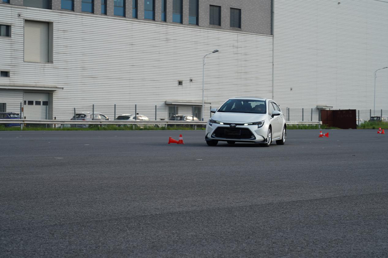 雷凌在绕桩极限过弯时,整体表现的还是比较灵活的,车身姿态保持的还是不错的,底盘调教的偏向于运动化,相对精准的转向,还是可以使车头做到精准的入弯,但车尾的跟随感觉慢半拍,有点拖沓节奏感,但整车的稳定性还是令人满意的。