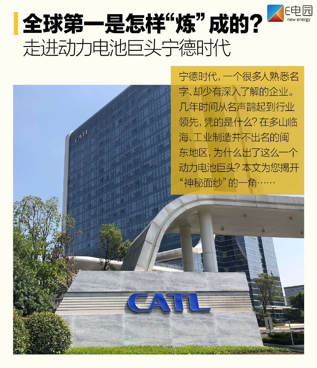 编者按:宁德时代,一个很多人熟悉名字、却少有深入了解的企业。在几年的时间从名声鹊起到行业领先,凭的是什么?在多山临海、工业制造并不出名的闽东地区,为什么会出了这么一个动力电池的巨头?诸如此类的疑问不胜枚举,直到这次的宁德蕉城之行,我们才揭开了“神秘面纱”的一角。