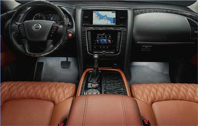 外形上,全新日产途乐的前脸采用了很凌厉的设计风格,进气格栅采用了一个平底V字形的宽镀铬条包围,并搭配了全新回旋镖形LED前大灯,突出了日产途乐的硬汉风格和棱角分明的前脸设计。同时,尾灯设计也采用了回旋镖形状,并首次采用序列式转向灯,很有豪华感。车的尾部细节进行了升级,尾灯换装了风格更凌厉的LED尾灯,后保险杠的外包围采用了与车身同色的车漆,底沿采用了银灰色的挡泥板,虽然尾部不像前脸那样很车底的改进,但是它的尾部整体看上去也年轻化了不少。