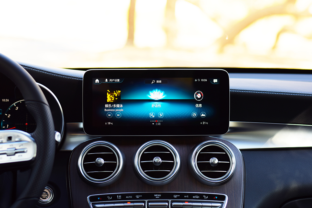 和外观一样,内饰方面的变化也比较大,改款GLC L使用了一块12.3英寸的全液晶仪表,中控大屏也变成了10.25英寸大屏,没有了老款车型宽边框小屏幕那种廉价感,看上去更加高级,方向盘造型也使用了奔驰最新的设计,全系车型都使用了实木中控面板,低配使用岑木,高配则使用胡桃木,这也给整个内饰增添了不少豪华感。