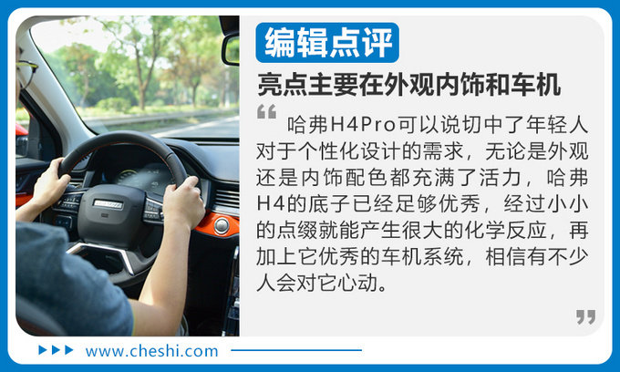 延续了哈弗H4的整体设计理念,它虽然是一台紧凑型SUV,可气势却不输高级别车型,并且真实的双边共两出排气也绝对是个良心的配置,避免了冬天的尴尬情况。美中不足可能就是整车尾部调整较小,但也大可不必过多纠结这个问题,你可以理解为Pro版是一个特殊配色版本,下面我们到车内看看。