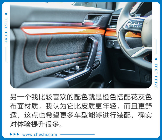 车内的表现如外观一样,整体进行了配色的调整,结果我认为是相当不错的,不同材质的搭配加上橙色饰板的运用,让它整体都年轻了不少。由外而内的变化让我们认可,那动态方面呢?