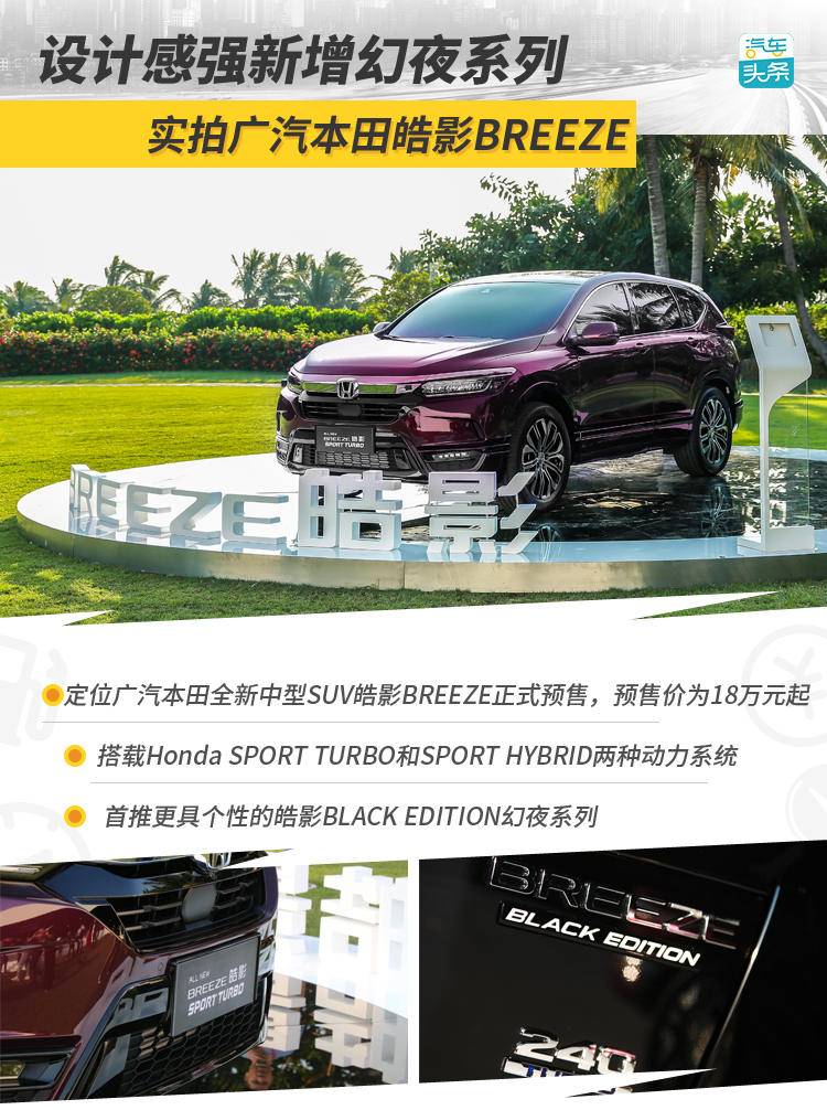 在SUV领域已先后布局有缤智 (配置|询价)和冠道 (配置|询价)的广汽本田,在面对庞大的中国汽车消费市场以及完成品牌全系列混动家族构建,旗下全新中型SUV终于在近日揭开了神秘面纱。9月25日,定位在广汽本田全新中型SUV的皓影 (配置|询价)BREEZE正式亮相并启动预售,预售价为18万元起。